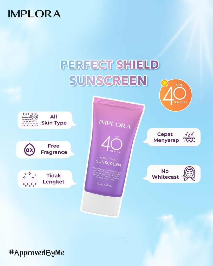 Sedangkan untuk kulit berminyak, pilih yang memiliki tekstur ringan dan tidak menyumbat pori. Implora Perfect Shield SPF 40 PA++++ cocok untuk semua jenis kulit karena formulanya seimbang antara perlindungan dan hidrasi.